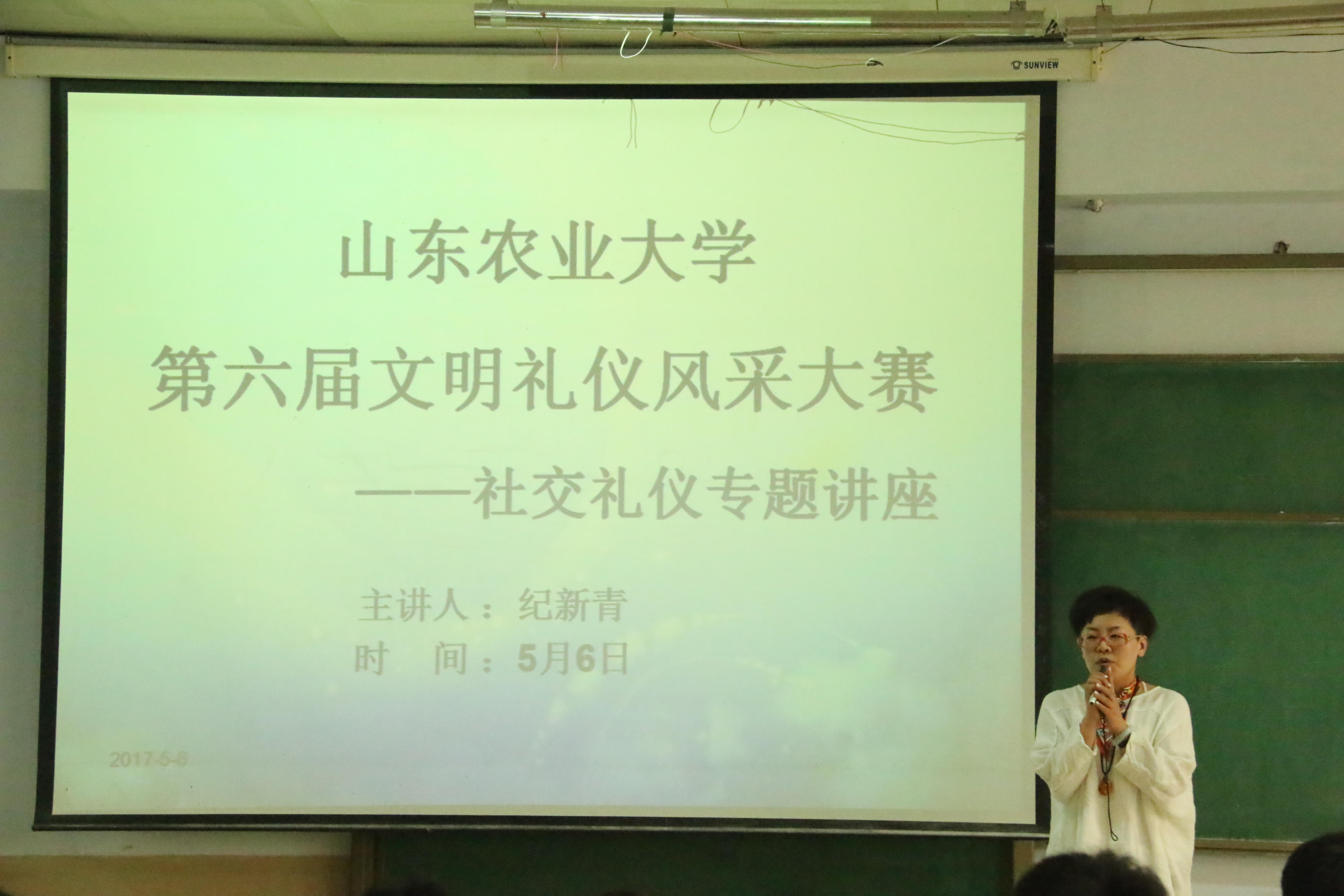 5月6日下午,化学学院在东校区制图室101举办社交礼仪专题讲座。讲座由文法学院纪新青老师主讲,学院2016级全体学生和进入第六届文明礼仪风采大赛决赛的选手们参加。