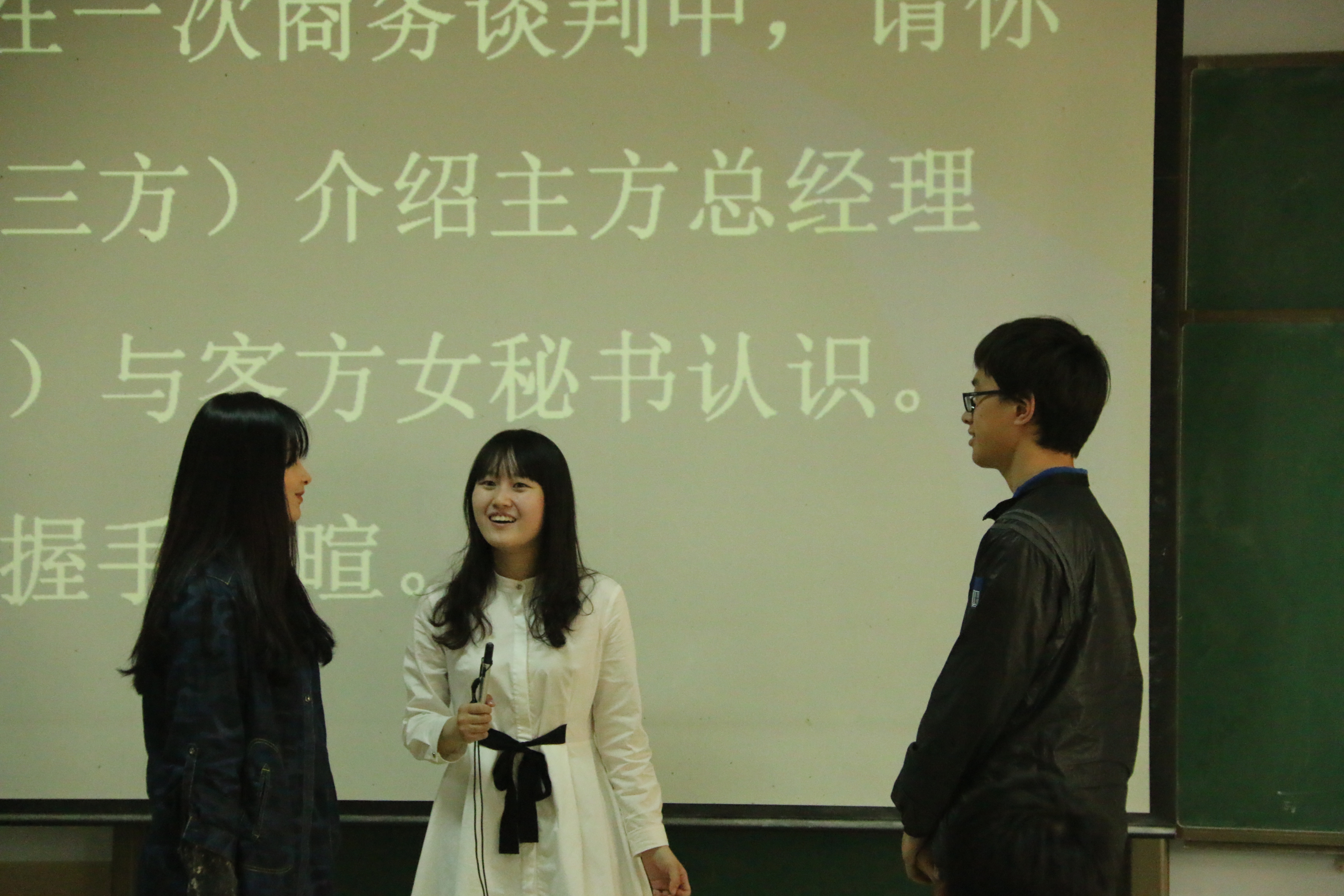 本次讲座中,纪新青老师以模拟实训题的形式带领同学们了解社交礼仪,并依次具体讲解了握手礼仪、称呼礼仪、介绍礼仪、名片礼仪以及服装礼仪,以形象生动的方式阐释了教养体现于细节,细节展现形象,形象创造机会与成功。