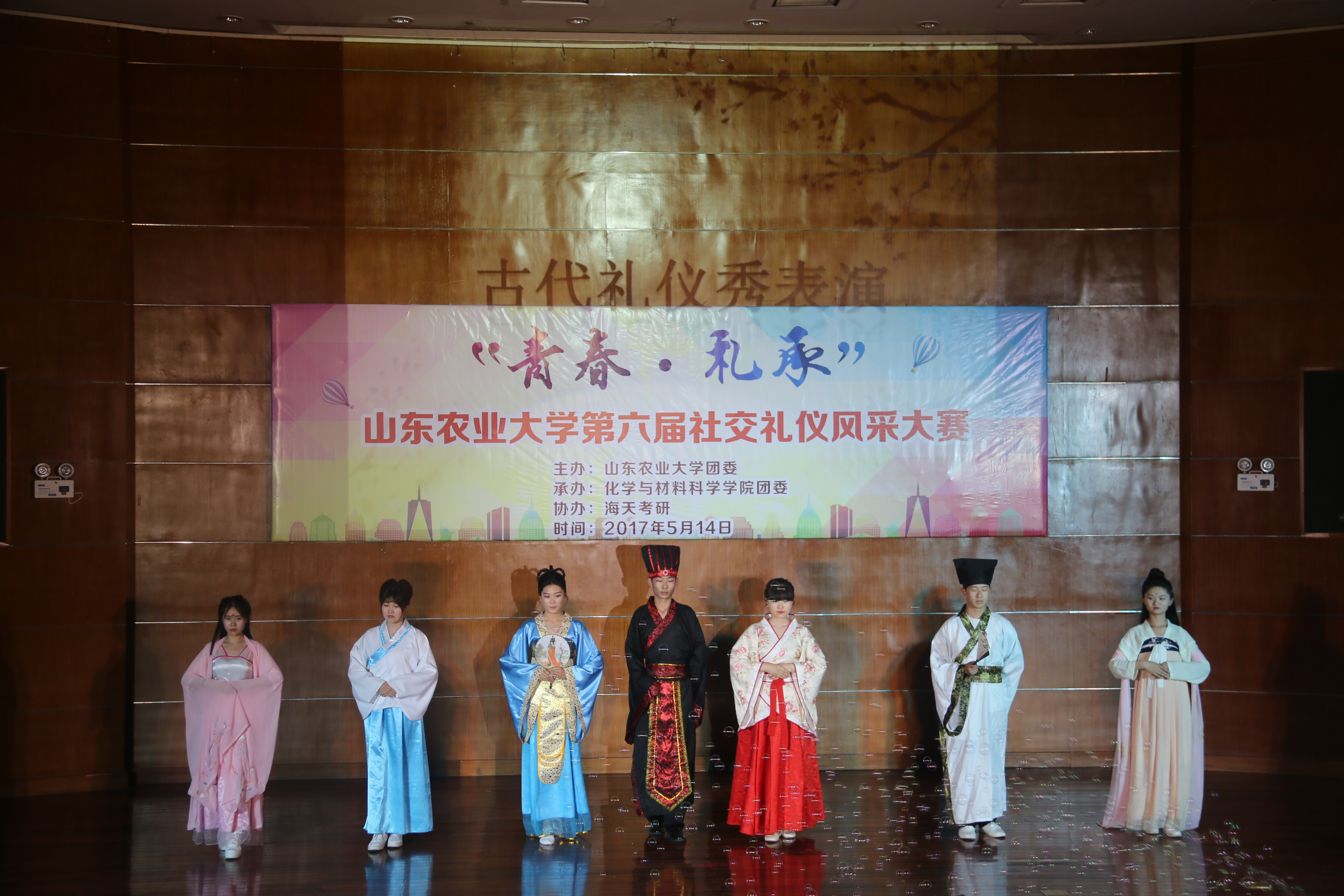 5月14日晚,由校团委主办、化学学院团委承办的山东农业大学第六届社交礼仪风采大赛于北校区学术报告厅举行。学校有关部门和学院负责人及2016级学生代表参加活动。