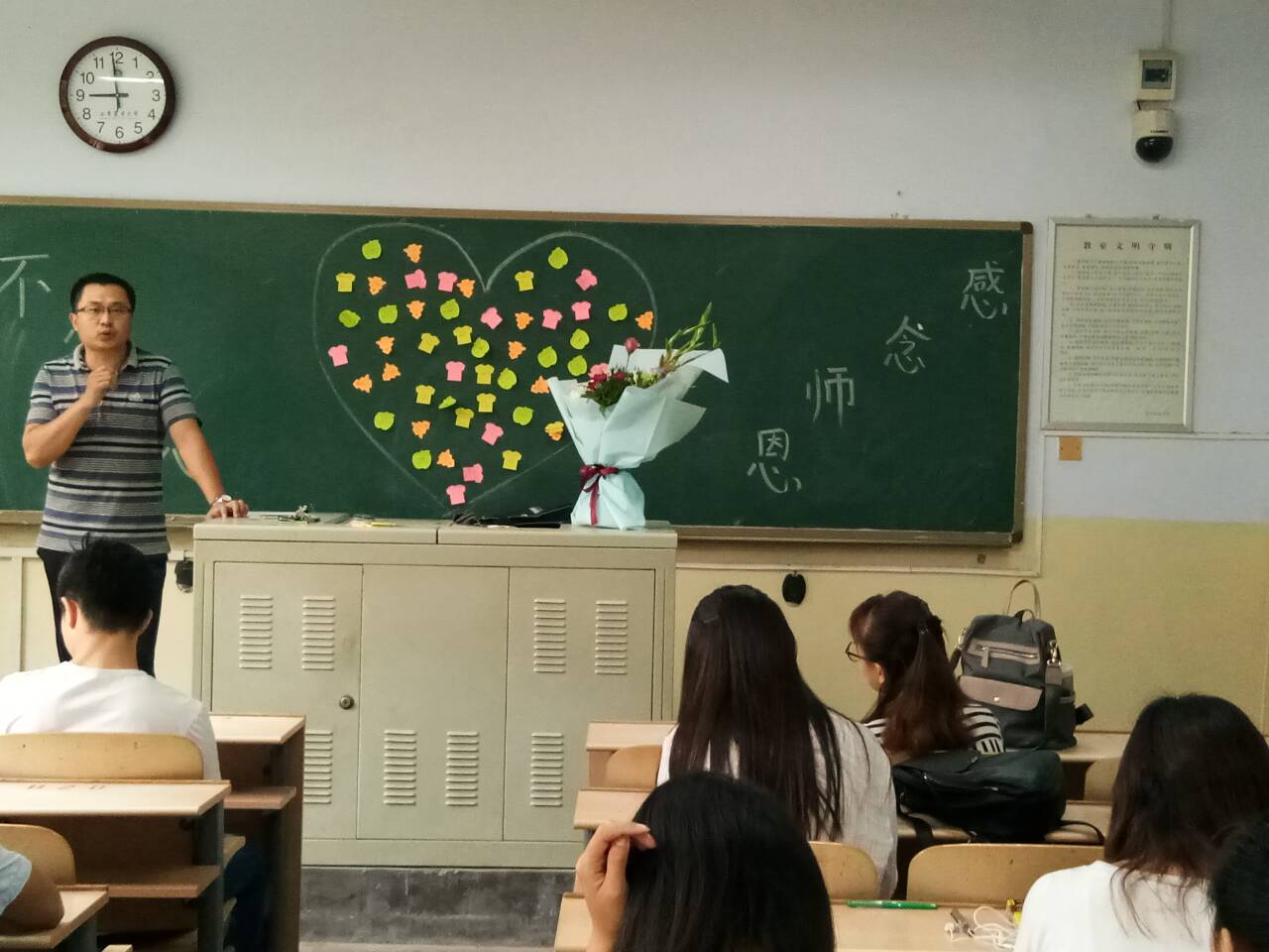 各班分别开展了形式多样的主题班会,大家对于老师的谆谆教诲满怀感激,精心为班主任准备了小礼物。班会中的重要环节是班主任发表讲话,老师首先对学生们的祝福表示感谢,进而分析总结了过往一年大家的学业,生活和学生工作,为大家再次强调了学习的重要性,并对接下来的学习任务提出了期望。对于大三年级,老师与同学们围绕将来的考研就业问题进行了探讨,为同学们提供了许多建议。2016级材料化学3班班主任尚鹏鹏老师因外出到清华大学做访问学者,该班同学选择以视频的方式,为在异地的老师送上真挚的祝福。