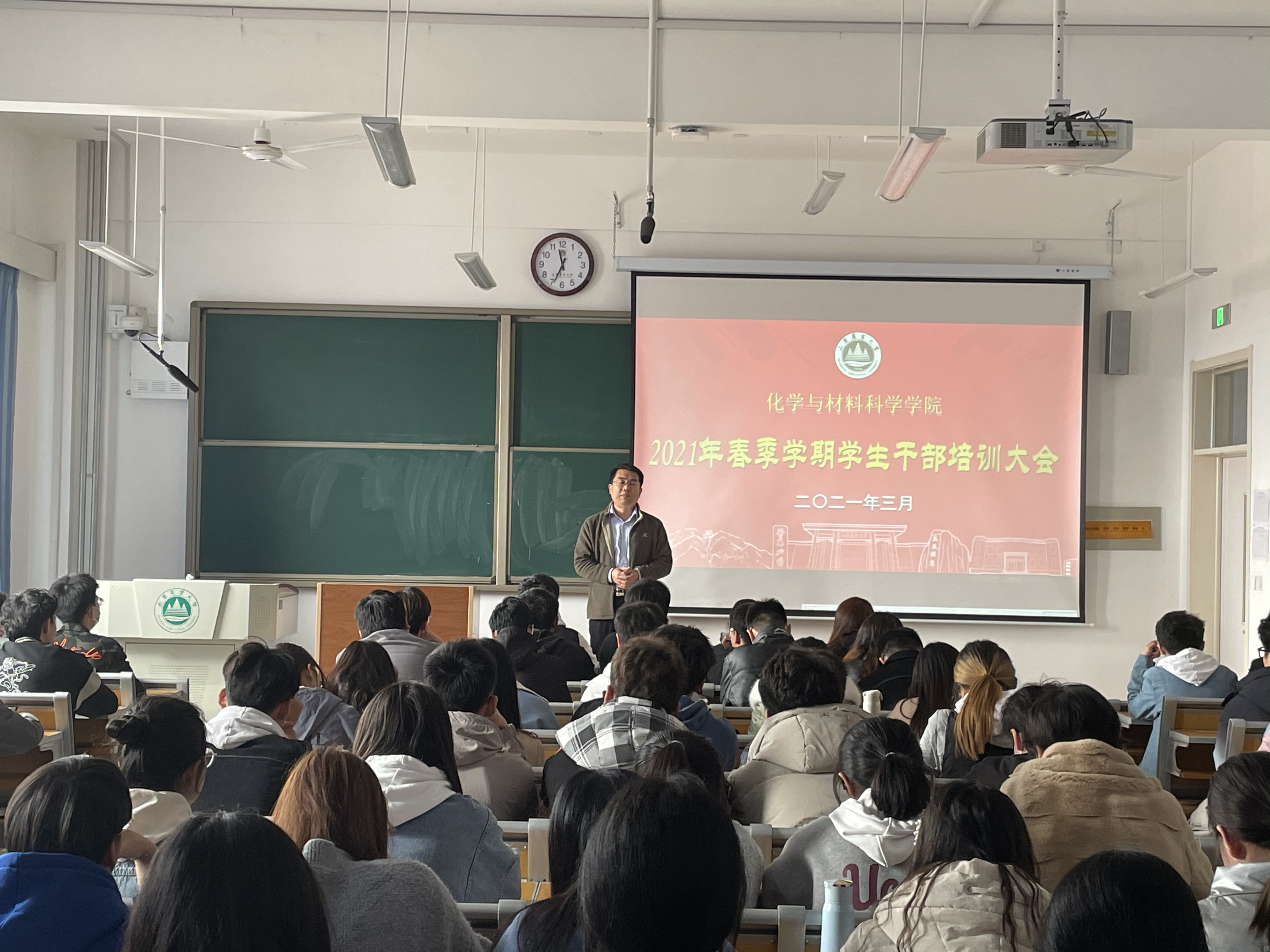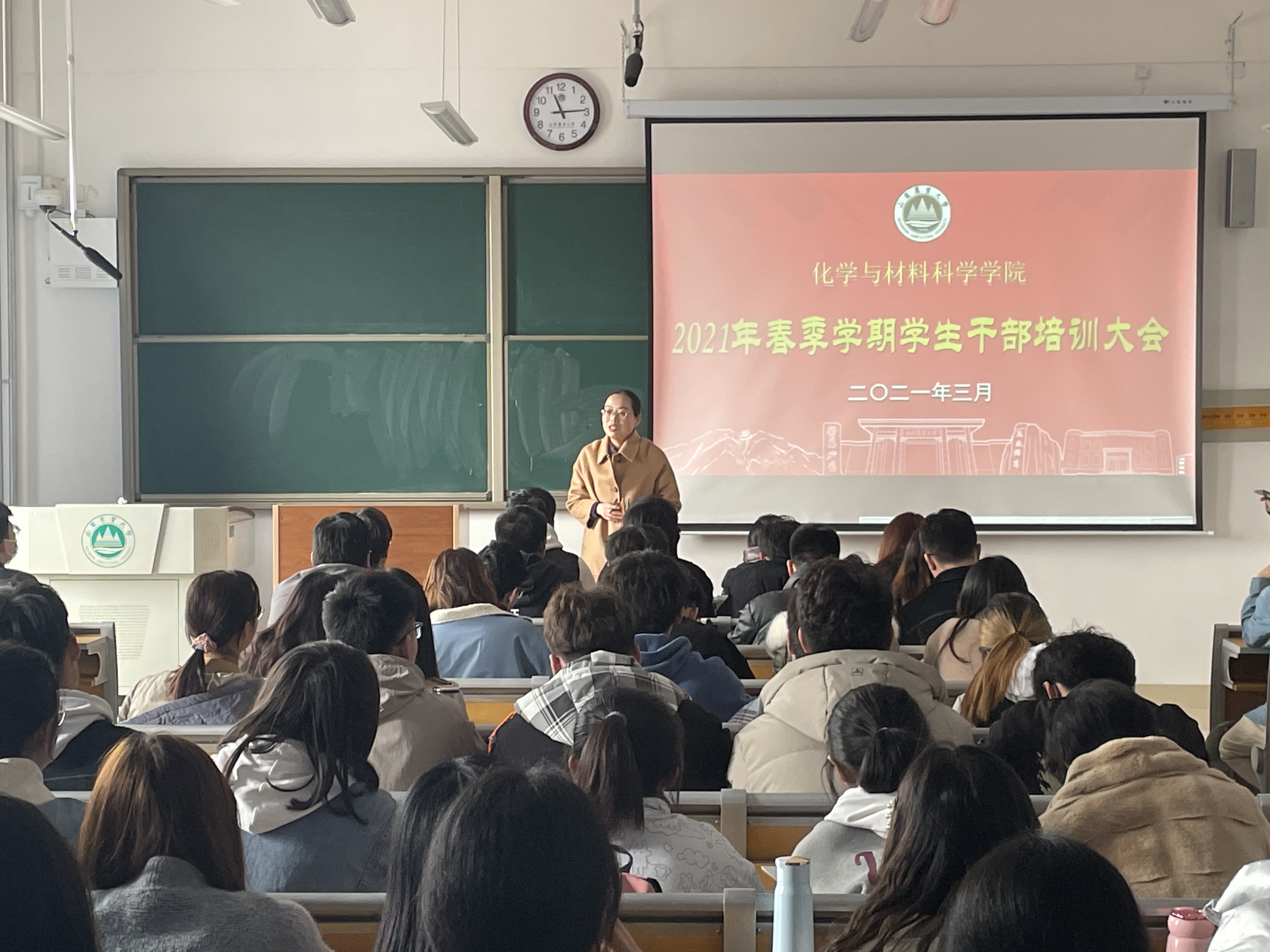 为强化学生干部队伍建设和管理,提升学生干部工作能力和水平,充分发挥学生干部在学生群体中的先锋模范,3月14日,化学学院于南校区东南片区教学楼召开2021年春季学期学生干部培训大会,学院党委副书记李华、全体辅导员和全体学生干部参加活动。团委书记杨青青主持会议。