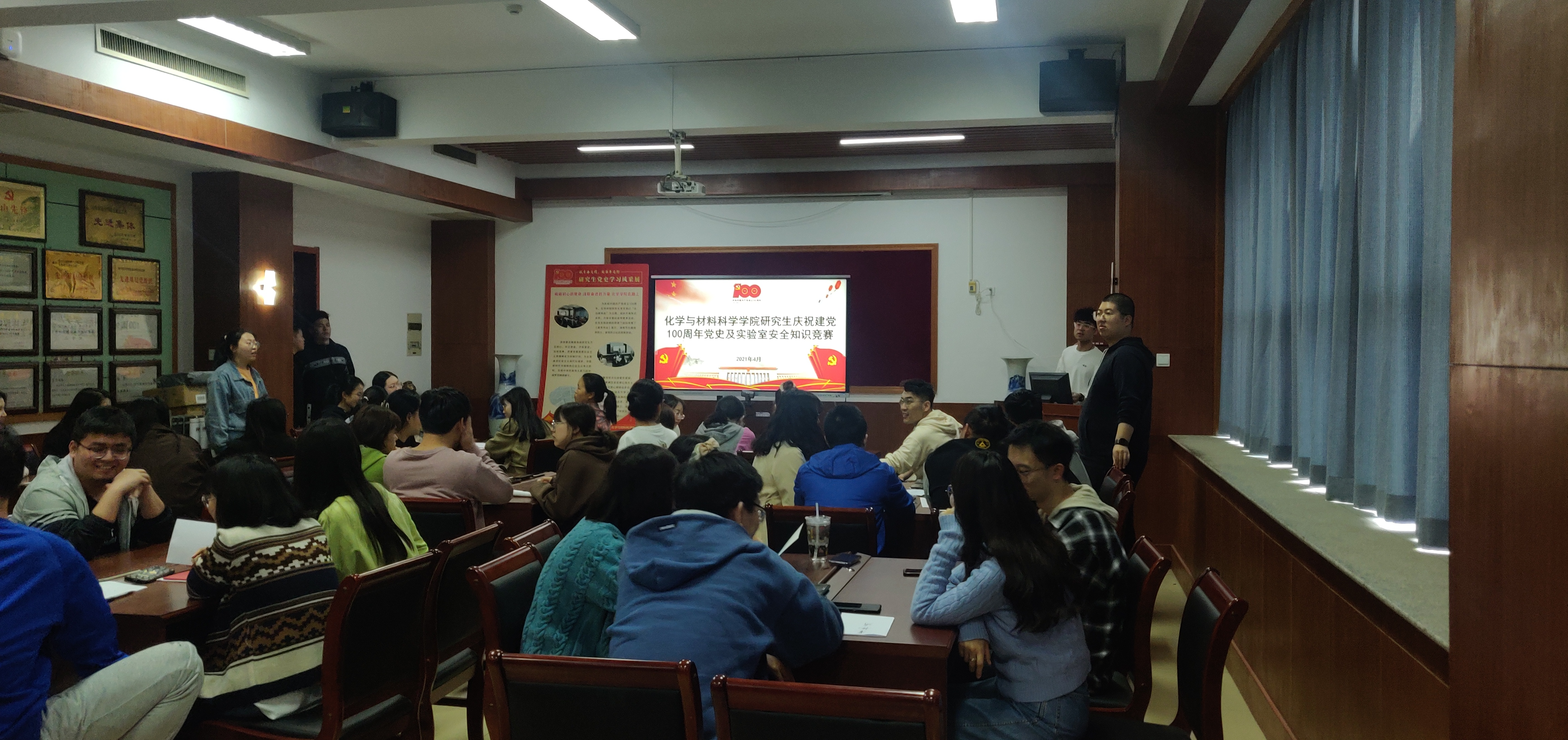 为迎接中国共产党成立100周年,引导学院研究生学党史、知党情、跟党走,在扎实专业知识的同时进一步学习党的理论知识,不断提升自己党史理论修养,进一步增强对党的归属感和认同感。化学学院研究生举行“重温百年党史,凝聚奋进力量”党史及实验室安全知识竞赛,学院全体研究生参与竞赛,研究生参与热情高,场面热烈。