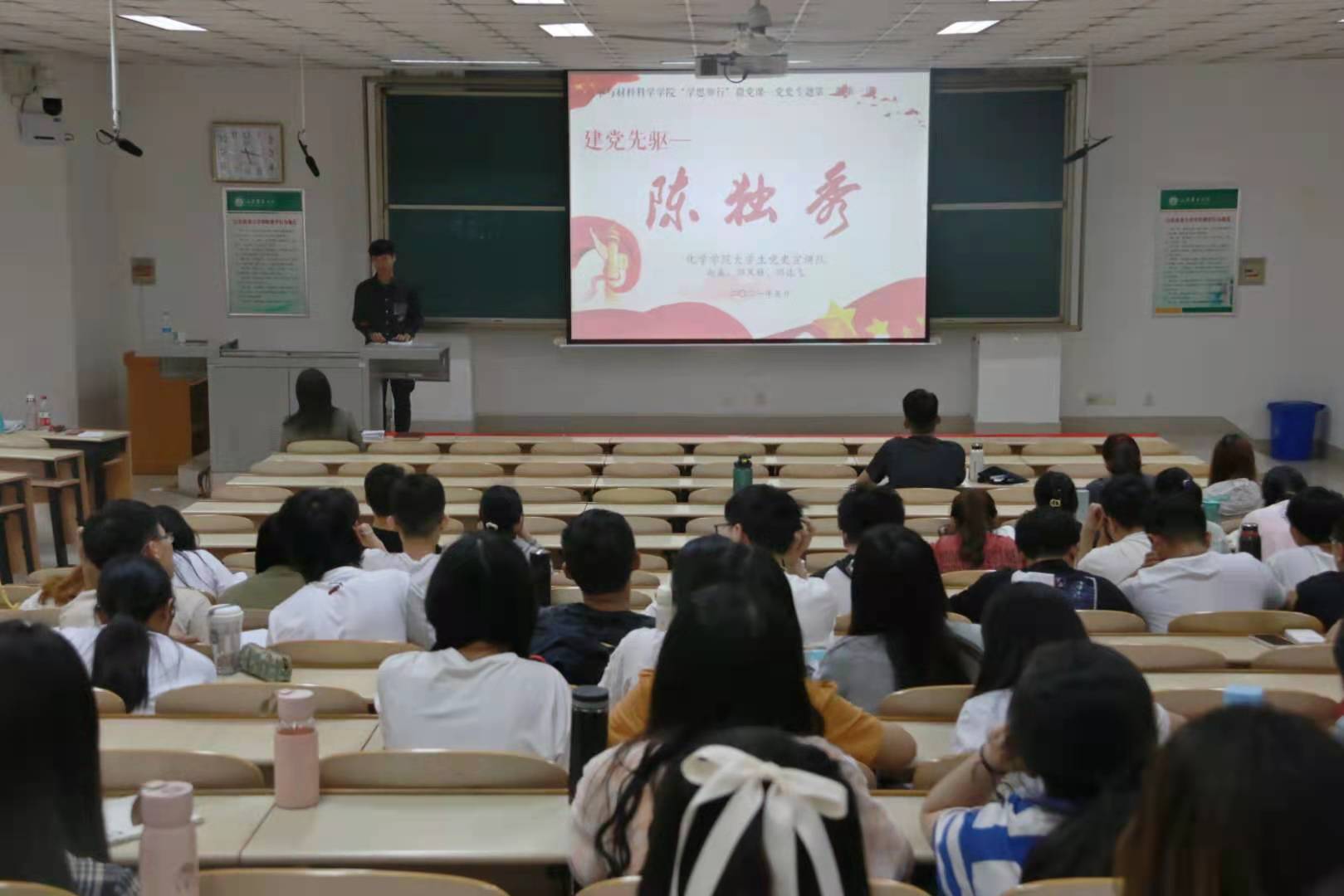 为积极响应党中央开展全党党史学习教育的号召,进一步加强学生学习党海纳百川的历史,弘扬奋进中的革命精神,5月25日下午,化学学院“学思知行”微党课党史专题第二期第一讲在南校区综合楼N104开讲。学院团委老师、本科生党支部全体党员、入党积极分子和学院大学生党史宣讲队参加本次党史学习教育。