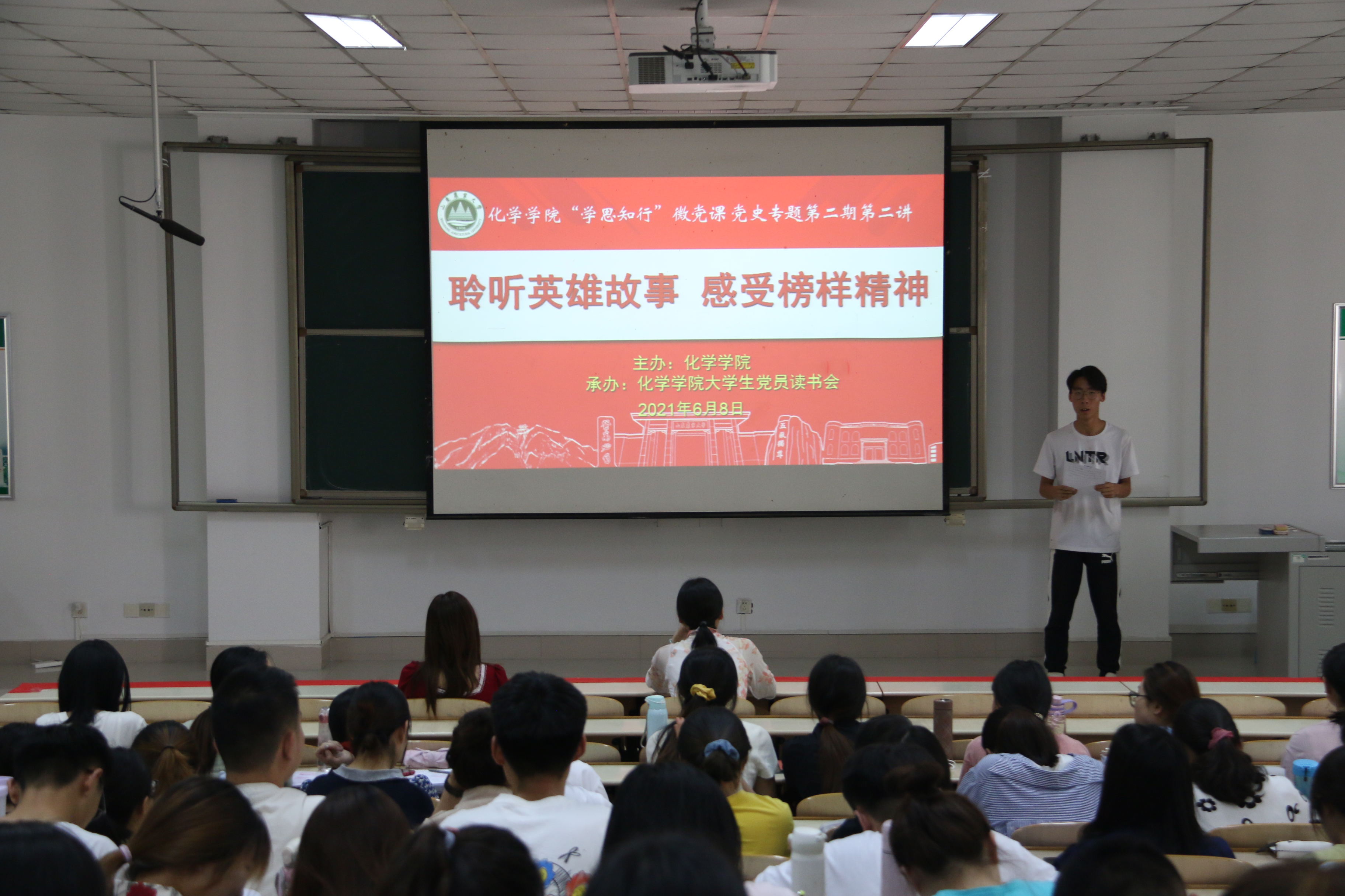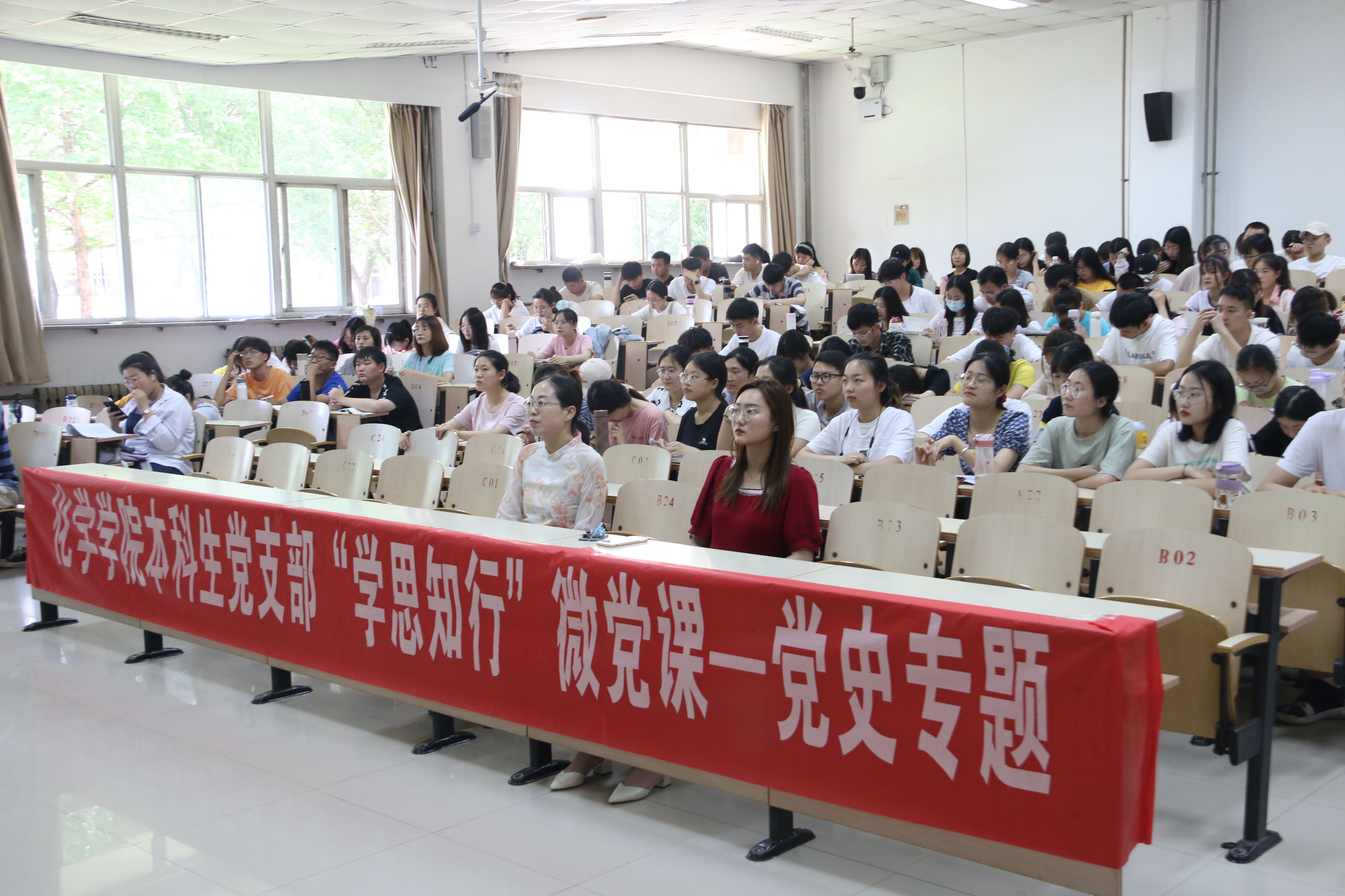 6月8日化学学院举行“学思知行”微党课党史专题第二期第二讲。学院本科生党支部全体党员和入党积极分子参加了本次学习活动。