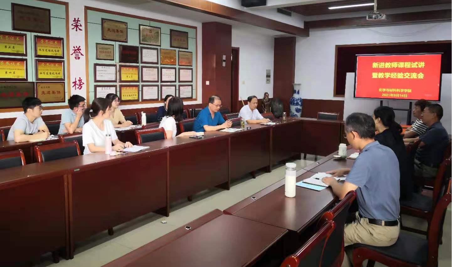 为进一步提升新进青年教师的教学能力,2021年9月14日下午,化学与材料科学学院举行了新进教师课程试讲活动。本次试讲活动由朱树华副院长主持,特别邀请了学校督导组成员姜林教授、学院督导组成员高吉刚教授进行现场指导,参与本次活动的老师还有新进教师的指导老师及系主任。