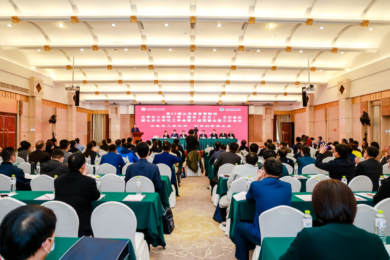 10月31日,第23届山东省高等院校化学化工学院(系)院长(主任)、书记会议暨山东化学化工学会第八届理事会第三次会议在我校召开。来自省内30余家高校化学化工学科相关学院负责人和有关企事业单位代表到会,以“立德树人担使命,科学创新谋发展”为题,共同研讨科研新成果,交流工作新思路。副校长林海、山东省化学化工学会秘书长刘宝胜出席开幕式并致辞。