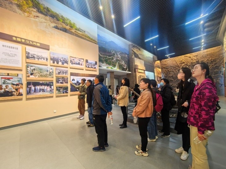 在九间棚党性教育基地,学院党委书记赵祥奎同志带领党员们先后参观了九间棚党性教育基地展览馆、九间棚旧址现场,认真聆听了讲解人员的讲解,详细了解了九间棚村的发展历程,通过参观学习,党员们了解了九间棚以村党支部书记刘嘉坤为代表的共产党员团结带领群众架电、修路、引水、栽树,用自己勤劳的双手和顽强的意志力使九间棚村从小到大,从弱到强,以“立下愚公移山志,敢教日月换新天”的雄心壮志,彻底改变了贫困落后的家乡面貌,用勤劳与朴实谱写了脱贫致富的感人篇章。“团结奋斗、顽强拼搏、坚韧不拔、艰苦创业”的九间棚精神深深地感染了活动现场的所有党员。