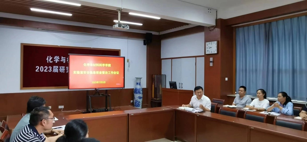 为加强实验室安全管理,构建安全环保和谐的实验环境,有效防范和消除实验室安全隐患,持续推进实验室安全建设工作。2023年7月5日下午,化学与材料科学学院在文理大楼811会议室召开实验室安全隐患排查整治工作会议。会议由学院副院长朱树华主持召开,学院各科研实验室安全管理负责人及实验技术人员参加会议。