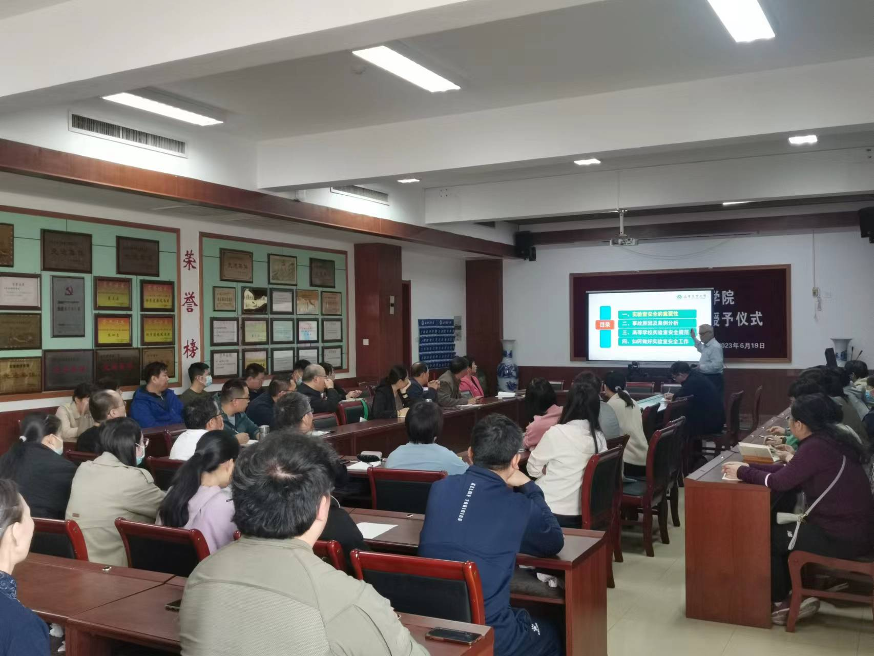 为进一步加强实验室安全工作,强化实验室安全管理,提高研究生导师、化学实验任课教师、实验技术人员和实验室管理人员的实验室安全意识和安全工作能力,近日,化学学院在文理大楼811开展实验室安全教育培训,邀请教授级高级实验师汪建民老师做“化学实验室安全”讲座,学院全体教师参加。院长徐静出席并讲话,副院长李培强主持。