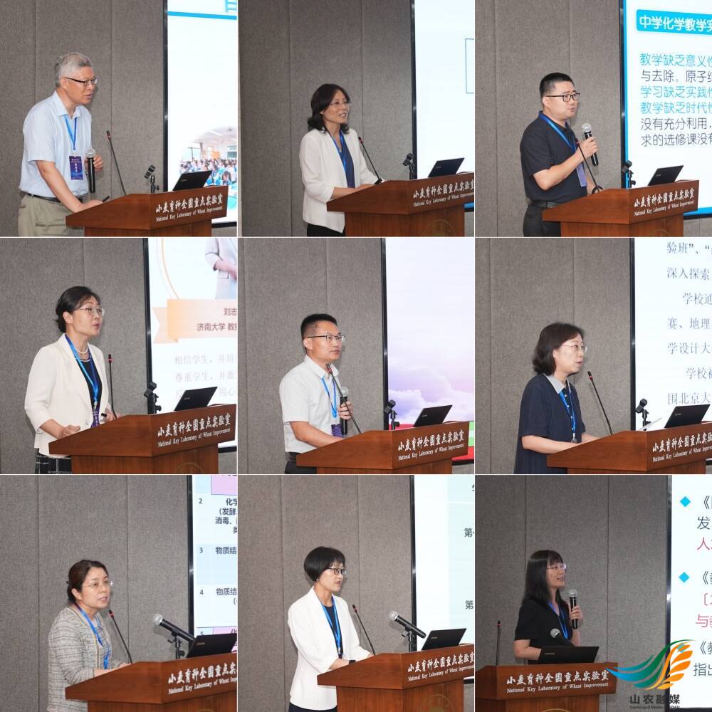 来自山东大学、山东师范大学、济南大学、山东农业大学、泰安市教育科学研究院、山东省实验中学、山东省泰安第一中学、莘县第一中学等单位的9位教师,结合自身研究思考,围绕“高中-高校化学衔接教育”等内容作了交流分享,纷纷表示,化学作为一门重要的基础学科,通过加强衔接教育,能有效提升教育教学质量,增强学生专业素养,不断提高人才培养质量。会上,学校学工处相关负责人进行了山东农业大学招生政策推介。